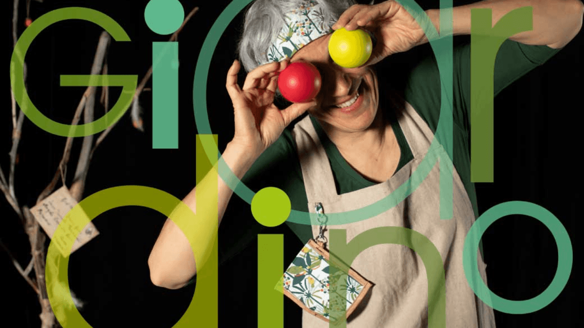 La giardiniera giramondo Alma, con storie, poesie e clownerie accompagna gli spettatori in un'esperienza immersiva e divertente nel mondo del teatro e della natura.